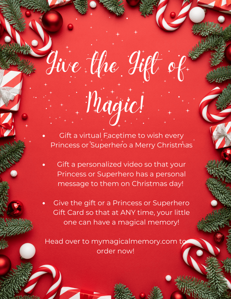 Purchase NOW to have your Personalized Video Ready by Christmas MORNING! December 14, 2023December 8, 2023 My Magical Memory - Character Parties & Events Share this: Click to share on X (Opens in new window) X Click to share on Facebook (Opens in new window) Facebook Like Loading... Related Published by My Magical Memory - Character Parties & Events View all posts by My Magical Memory - Character Parties & Events