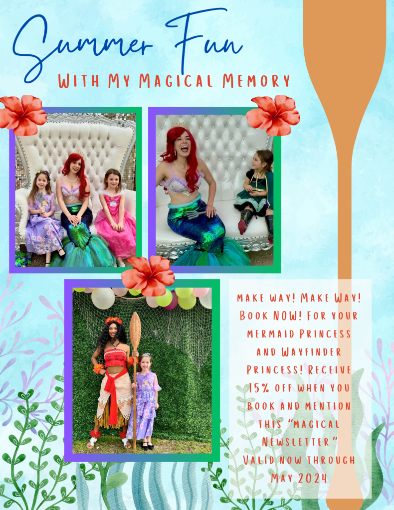 Book Your Summer Fun! April 15, 2024March 15, 2024 My Magical Memory - Character Parties & Events Share this: Click to share on X (Opens in new window) X Click to share on Facebook (Opens in new window) Facebook Like Loading... Related Published by My Magical Memory - Character Parties & Events View all posts by My Magical Memory - Character Parties & Events
